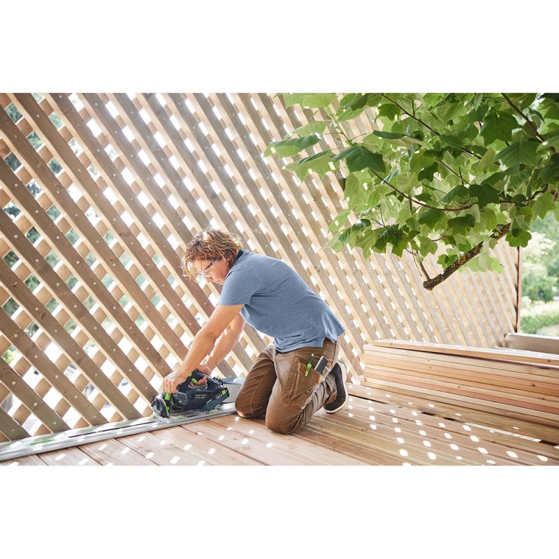 A TSC 55 KS reúne todas as funcionalidades essenciais que uma serra sem fios precisa para apoiar nas suas tarefas móveis. O seu design compacto, a construção leve e o desempenho total com apenas uma bateria fazem dela uma ferramenta versátil. O design elegante não só é extremamente confortável na sua mão, como também amplia as suas aplicações: cortes precisos diretamente junto à parede e alinhamento perfeito com o trilho guia. Com uma bateria na serra e a segunda em carregamento, pode trabalhar sem interrupções durante todo o dia.